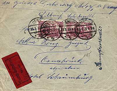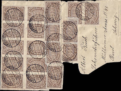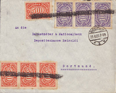 Franking With Break: franking on heavy creased paper with damaged paper structure |