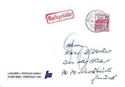 Zehnfachfrankatur: Postsendung aus Deutschland bei der die Briefmarke zu einem Zehntel ihres Nennwert verwendet wurde (z. B. Brief 24 Pfennig) |