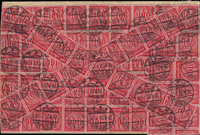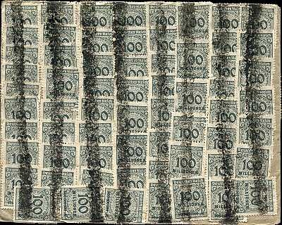 Dachziegelfrankatur: Postsendung frankiert mit überdeckend aufgeklebten Briefmarken z. B. in Inflationszeiten wenn kleine Nennwerte aufgebraucht wurden |
