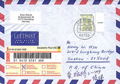 Hinweisvermerkfarbänderung: Postsendungen die zeitlich versetzt mit dem gleichen Hinweisvermerk in unterschiedlichen Farben versehen wurden |