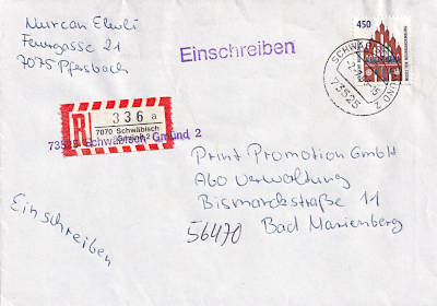 Hinweisvermerk Aufbrauch: Vermerk auf einer Postsendung der zwecks Aufbrauch z. B. mit einem Handstempel versehen wurde |