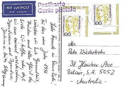 Postal Marking Postcard: marking indi-cating a basic postal shipment for sending short messages |