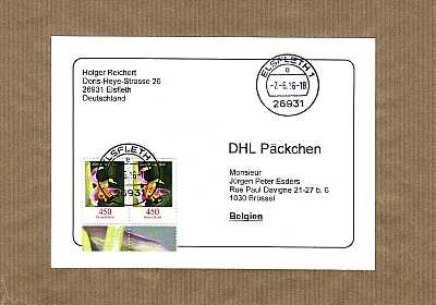Postal Marking Throw In Registeration: marking indicating an additional service from Deutsche Post in which the sender receives a certificate of delivery and the deliverer docu-ments the insertion into the recipient´s mailbox |