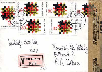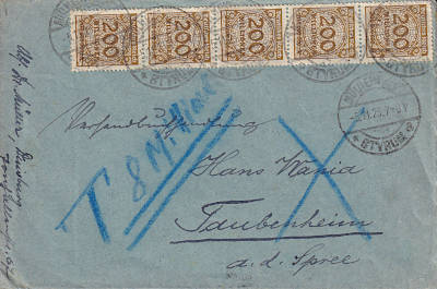 Hinweisvermerk Nachträglich entwert-et: Vermerk auf einer Postsendung bei der die Frankatur (teilweise) nicht unmittelbar nach der Einlieferung sondern erst später entwertet wurde |