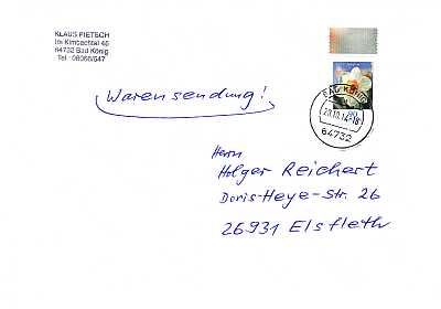 postgebührenfreie Dienstpostsendung: Postsendung die zwischen zwei Behörden oder einer Behörde und einem Kunden unent-geltlich befördert wurde |