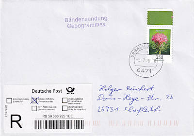 Postgebührenbegünstigung: Grundsend-ung die unter bestimmten Bedingungen zu einer reduzierten Postgebühr verschickt werden darf |
