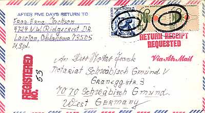 Brief mit Übergabe-Einschreiben, Luftpost und Rückschein |