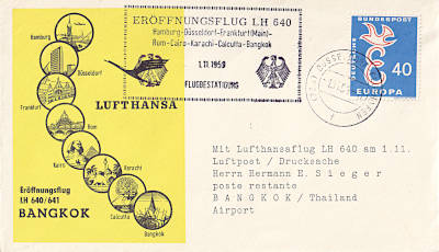 Erstflugbrief: Postsendung die bei einem Erstflug (Eröffnung einer neuen Flugstrecke oder Einsatz eines neuen Flugzeugtyps auf einer vorhandenen Strecke) befördert wurde |