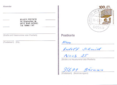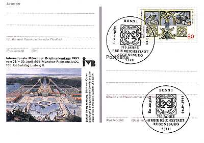 nicht beförderte Ganzsachenpostkarte mit Ersttagssonderstempel |