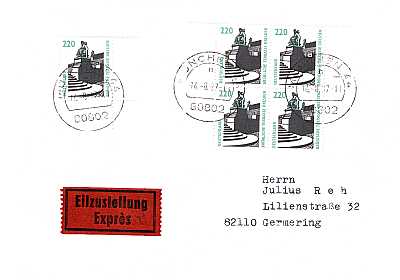 Ersttagsbrief: Postsendung frankiert mit Briefmarken die am Beginn der Gültigkeitsdauer verwendet wurden |