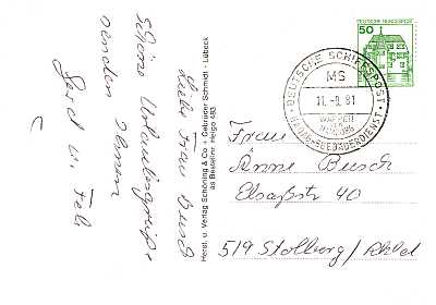 Postbeförderung: Übermittlung einer Nachricht die an einen Gegenstand gebunden ist (z. B. Brief, Postkarte) |
