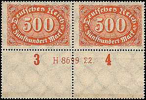 Bogenfeld mit Plattennummer: Neben-feld das mit einer Plattennummer bedruckt wurde |