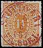 gestempelt: (gest.) Erhaltungszustand einer Briefmarke die während ihrer postalischen Verwendung mit einem Stempel entwertet wurde |