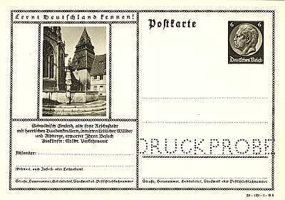 Druckmuster / Druckprobe: Kennzeichnungseinlochung in deutsche Ganzsachenpost-karten die für Werbezwecke verwendet wurden |