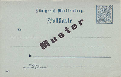 Ganzsachenpostkarte mit "Muster"-Aufdruck |