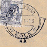 Posthornstempel: freiformatiger Stempel in Posthornform |