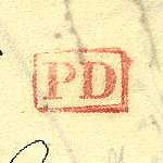 PD-Handstempel: Nebenstempel zur Bestätigung der vollen Gebührenentrichtung (französisch: Port payé jusqu´a Destination = Porto bezahlt bis zum Bestimmungsort) |