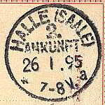 Ankunftshandstempel: Nebenstempel einer Postfiliale der den Ankunftsort und das Ankunftsdatum einer Postsendung enthält |