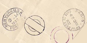 Zensurhandstempel: Nebenstempel auf einer Postsendung der nach der Überprüfung des Inhalts angebracht wurde |