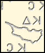 Landkarten- und Buchstabenwasserzeichen: bildliche Darstellung von Umrisse der Insel Zypern und Buchstaben als Wasserzeichenzeichnung