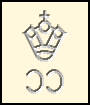 Krone C C Wasserzeichen: bildliche Darstellung von Kronen über den Buch- staben "C C" als Wasserzeichenzeichnung (englisch: Crown Colony = Kronkolonie)