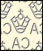 Krone C A Wasserzeichen: bildliche Darstellung von Kronen über den Buchstaben "C A" als Wasserzeichenzeichnung (englisch: Crown Agency = Kronagentur)