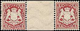 gezähnter Zweierstreifen mit Durch-stich zwischen den Briefmarken: Zweier-streifen mit Zähnung der als beabsichtigte Ausführung zwischen den Briefmarken mit einem Durchstich versehen wurde |