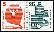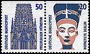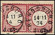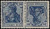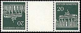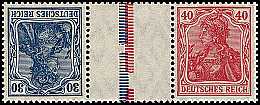Zusammendruck mit Briefmarkenauf-druck über zwei Briefmarken: Zweier-streifen der mit einem gemeinsamen Brief-markenaufdruck versehen wurde |