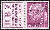 Zusammendruck Briefmarkenbilddruck mit Reklamefeld: Einheit bei der als beab-sichtigte Ausführung ein Bogenfeld mit einem Briefmarkenbilddruck und das andere mit Werbung bedruckt wurde |
