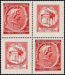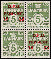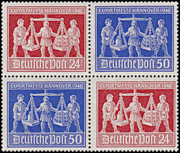 Zusammendruck mit schachbrett-artigem Briefmarkenaufdruck: Einheit bei der als beabsichtigte Ausführung nur jede zweite Briefmarke mit einem Briefmarken-aufdruck versehen wurde |