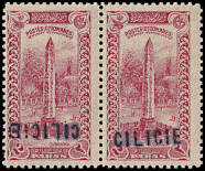 Zusammendruck mit einfachem und doppeltem Briefmarkendrittaufdruck: Einheit bei der als beabsichtigte Ausführung eine Briefmarke mit einem einfachen und die andere mit einem zweifachen Briefmarken-drittaufdruck versehen wurde |