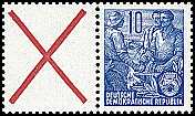 Zusammendruck Briefmarkenbilddruck mit Kreuz: Einheit bei der als beabsichtigte Ausführung ein Bogenfeld mit einem Brief-markenbilddruck und das andere mit einem Andreaskreuz bedruckt wurde |