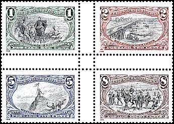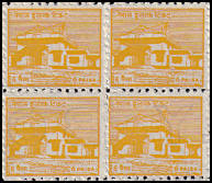 Zwischenstegherzstück mit Zierfeld: Einheit bei der als beabsichtigte Ausführung die vier außen liegenden Bogenfelder mit einem Briefmarkenbilddruck und die Bogen-felder dazwischen mit Zierfelder versehen wurden |