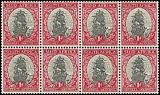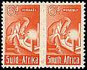 In Südafrika und Namibia wurden die Brief-marken mit englischen oder afrikaanschen Inschriften schachbrettartig zusammen-hängend gedruckt um niemanden sprachlich zu benachteiligen |