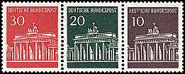 Dreierstreifen: Einheit bestehend aus 3 in einer Linie zusammhängende gleiche oder unterschiedliche Briefmarken |