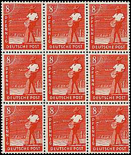 Neunerblock: Einheit bestehend aus 9 gleichen oder unterschiedlichen Briefmarken |