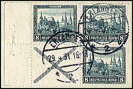 Viererblock mit 3 Briefmarken und einem Andreaskreuz |
